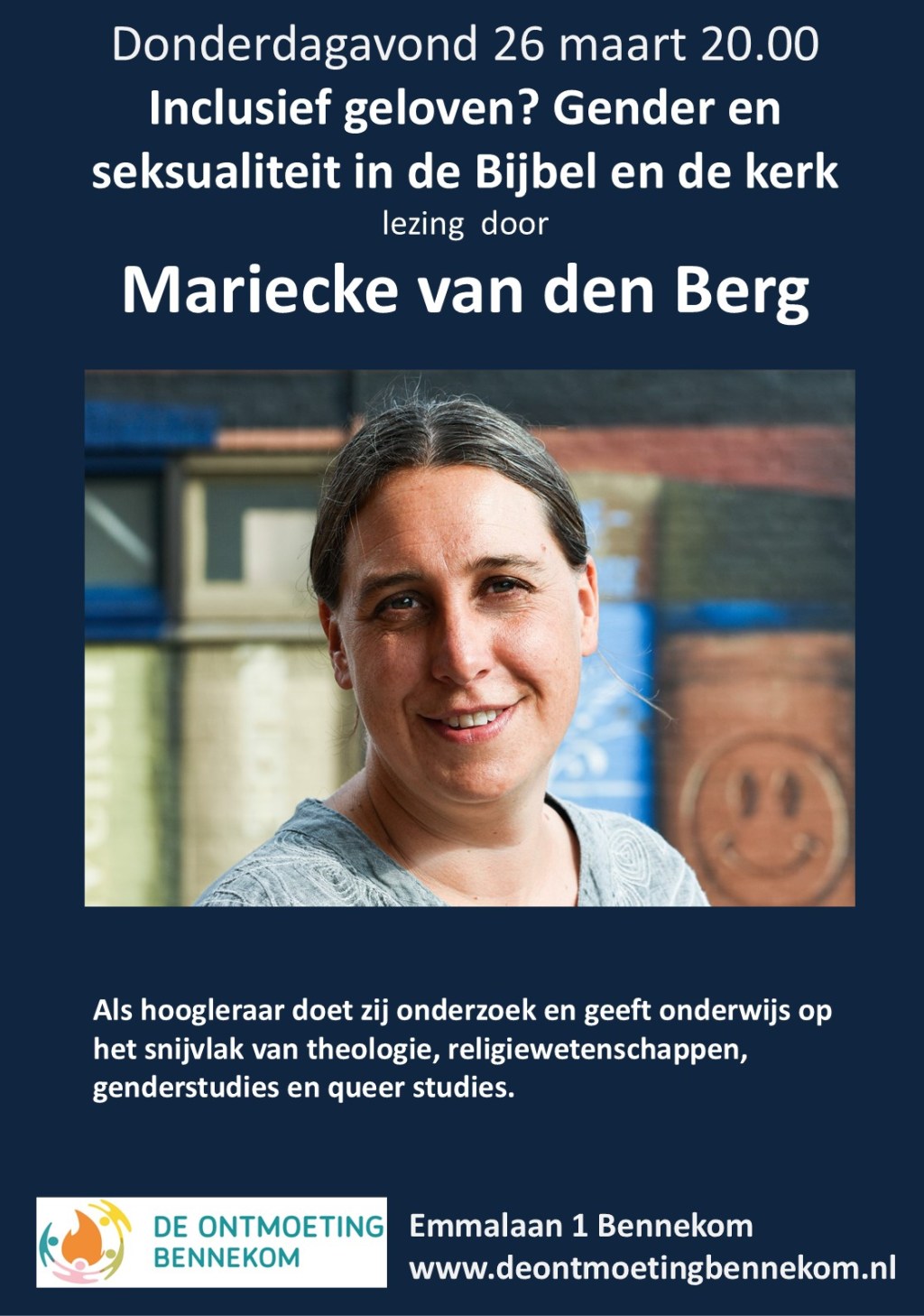 De bronteksten van het christendom werden geschreven, doorgegeven en geïnterpreteerd door mannen. Hun perspectief was leidend in de beelden van God, theologische inzichten en manieren van vieren die bepalend werden. Dat heeft grote gevolgen gehad voor de plek van vrouwen en LHBT-personen (mensen die lesbisch, homoseksueel, biseksueel of transgender zijn). In het grootste gedeelte van de wereldkerk kunnen zij geen leidinggevende posities innemen. Voor LHBT-personen geldt soms dat hun liefde niet dezelfde erkenning krijgt als die van hetero’s, of zelfs wordt afgekeurd. De afgelopen decennia hebben vrouwen en LHBT’s echter ook een steeds duidelijker, eigen theologische stem gezocht en gevonden. Deze lezing bevat een inleiding in deze rijkdom aan inzichten. Wanneer we de Bijbel lezen vanuit feministisch of queer perspectief, valt er licht op passages, karakters en waarheden die onderbelicht zijn gebleven.